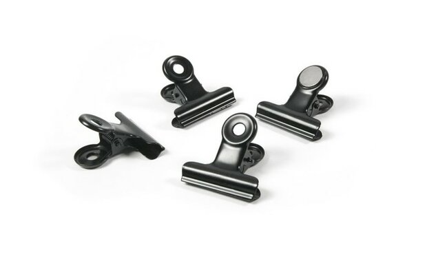 Magneet met clip, gemaakt van zwart metaal. Set met 4 stuks.