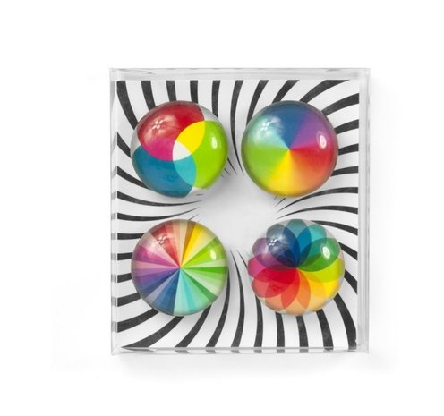 Magneet Eye - Spectrum - set van 4 glazen magneten. Vrolijke magneten met een groot magneetoppervlak. In leuke geschenkverpakking! Formaat Ø 3,5 x 1,3 cm Materiaal: Glas Houdkracht op magneetverf, magneetbehang en magneetstickers: 4 x vel A4.