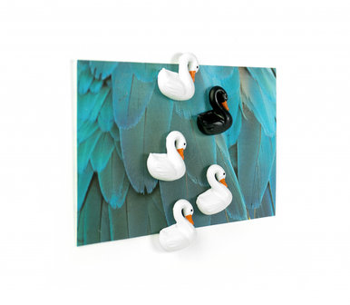 Leuke, magnetische zwaantjes, 4 witte en 1 zwarte. Met sterke neodymium magneet.